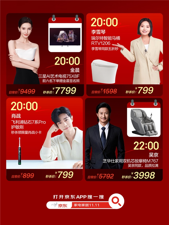 10月30日,京东家电家居 11.11 秒杀日准时拉开帷幕,为消费者带来一场覆盖家电家居品类的超值福利盛宴。活动当天,在京东APP秒杀活动会场,好家货低至1折,更有明星私藏同款好物开启超低价秒杀。无论是追求品质生活的消费者,还是喜爱明星同款的粉丝,都能在这场秒杀狂欢中找到心仪之选。